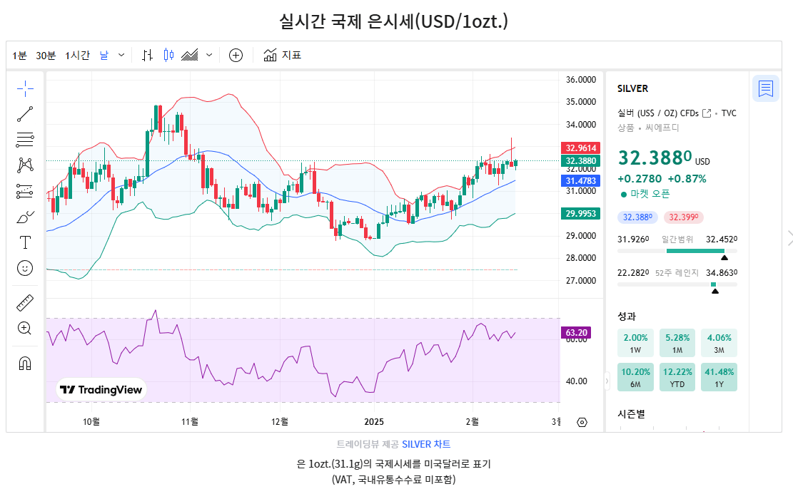 은 가격이 2024년 45% 폭등 후 $30~$32 구간에서 정체된 지금, JP모건 골드만삭스는 "2025년 2분기 $50 돌파 가능성"을 공개하며 투자자들의 심장을 뜨겁게 달구고 있습니다. 실시간 차트를 읽는 기술이 투자 성패를 가르는 시대, 지금 바로 이번 정보 확인하시고 현명한 분석법을 습득해 보세요.